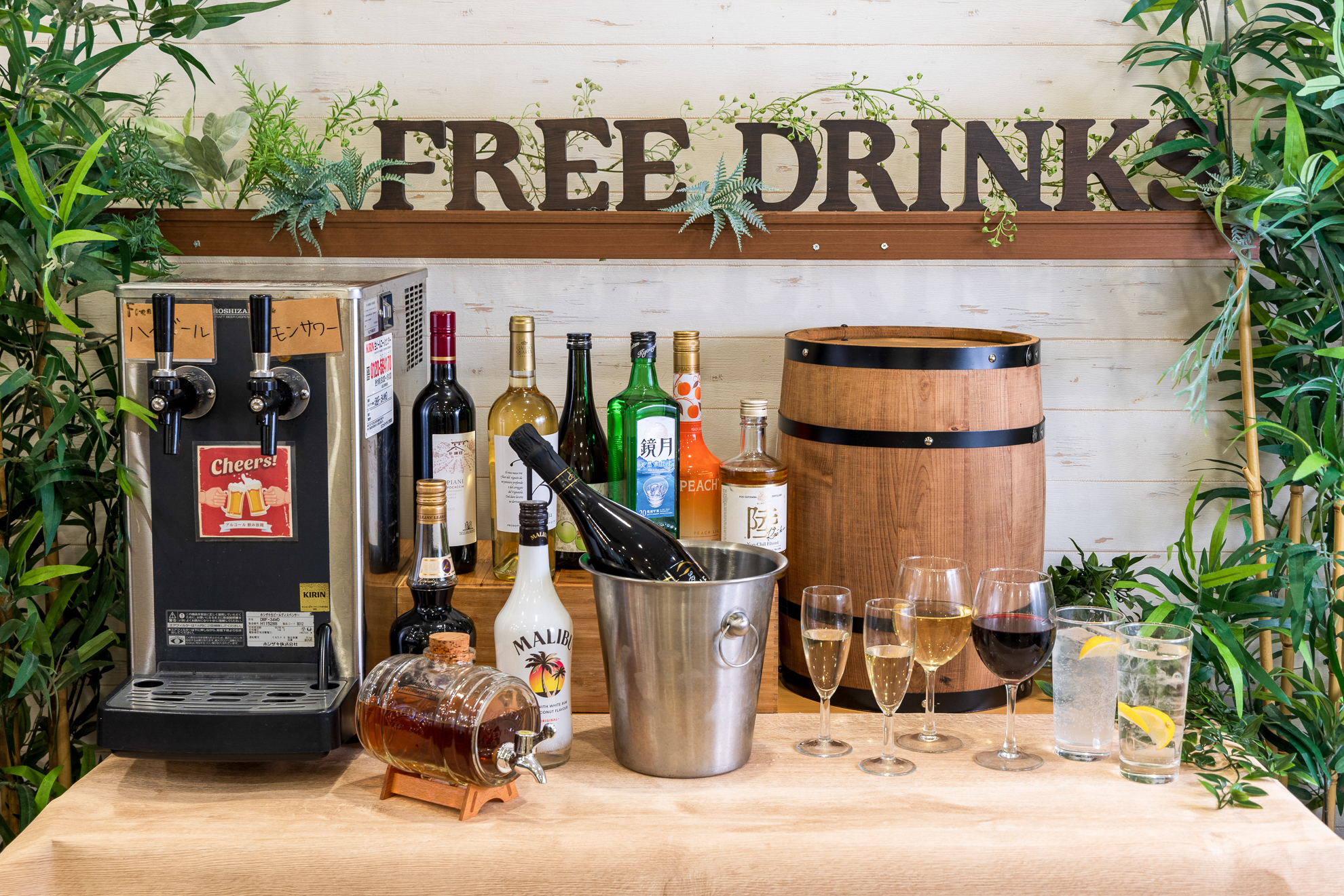 アルコールコーナーも充実しており、果汁シロップがございますのでお好みのサワーを作ることも可能でございます。
