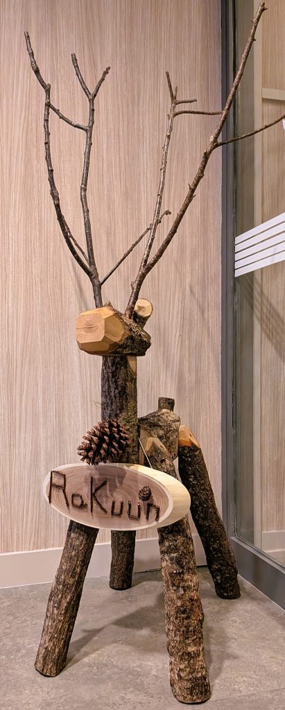 入口には大きな鹿さん、フロントには小さな鹿さんたちがかわいらしくお客様をお待ちしてます。